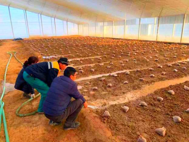 12月19日中午,羊肚菌栽培专家跨省赶赴兰州新区现代农业示范园指导菌种在土壤封冻前的营养袋摆放及冬水浇灌工作——作为羊肚菌栽培技术的核心环节,营养袋摆放位置与土壤湿度对次年菌种萌发时间及出菇量具有显著影响。