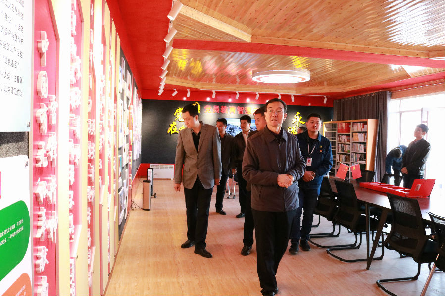朱建斌一行在集团党员活动室调研